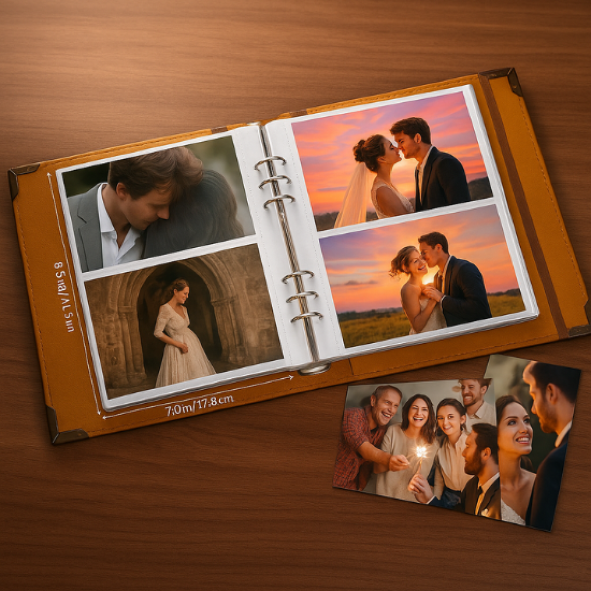 Vintage Fotoalbum 10×15 cm (4×6") aus hochwertigem Kunstleder – das kompakte Taschenalbum für Jubiläen, Urlaube, Familiengeschichte und als Weihnachtsgeschenk. Mit 40 Klarsichtfolien für bis zu 160 Fotos (je Folie 4 Bilder) archivierst du Erinnerungen sauber, staubgeschützt und griffbereit. Das rechteckige Format (ca. 25 × 20 cm) liegt sicher in der Hand, die klaren Einstecktaschen sorgen für schnelle Bestückung ohne Kleben.