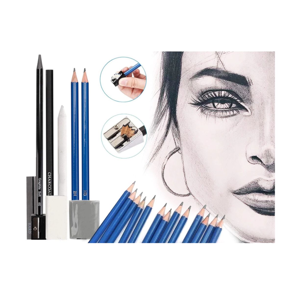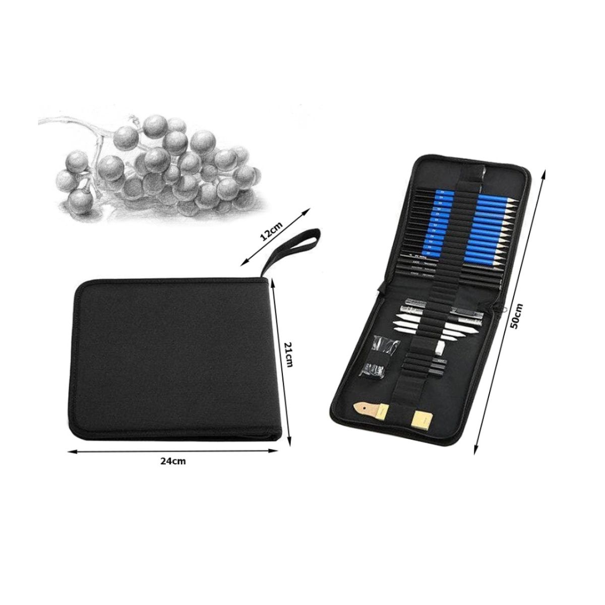 Skizzenzeichnungs-Set 32-teilig Künstler Bleistifte Kohle Graphit Etui